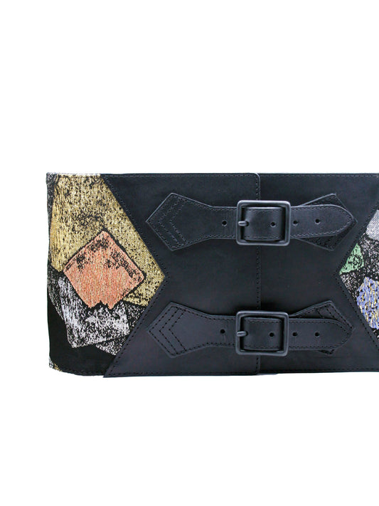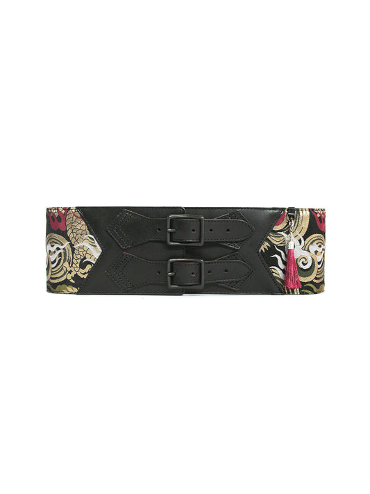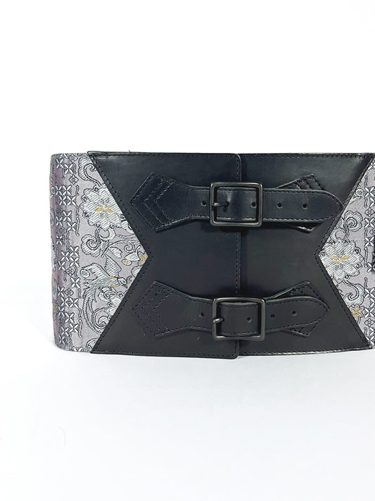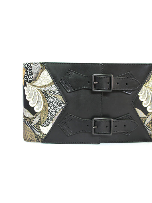 コルセット帯ベルト「クロコ型押しエナメルレザー黒/角帯」