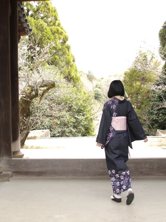 手描き友禅デニム着物「桜尽くし/ピンク」