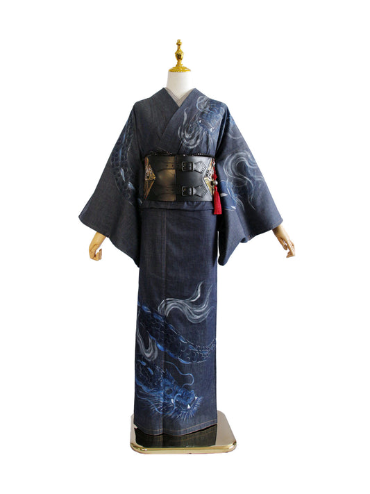手描き友禅デニム着物「二頭龍」