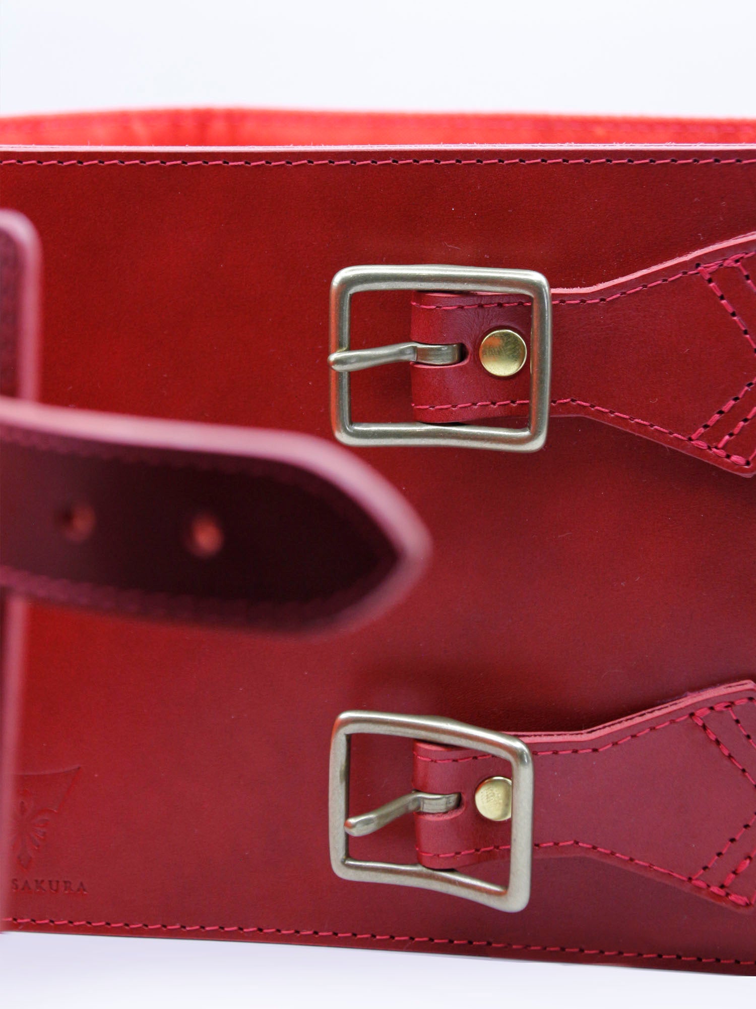 ベルト穴位置の2個目または3個目に近いサイズをお選びいただくと、革部分のシルエットが美しく出ます。