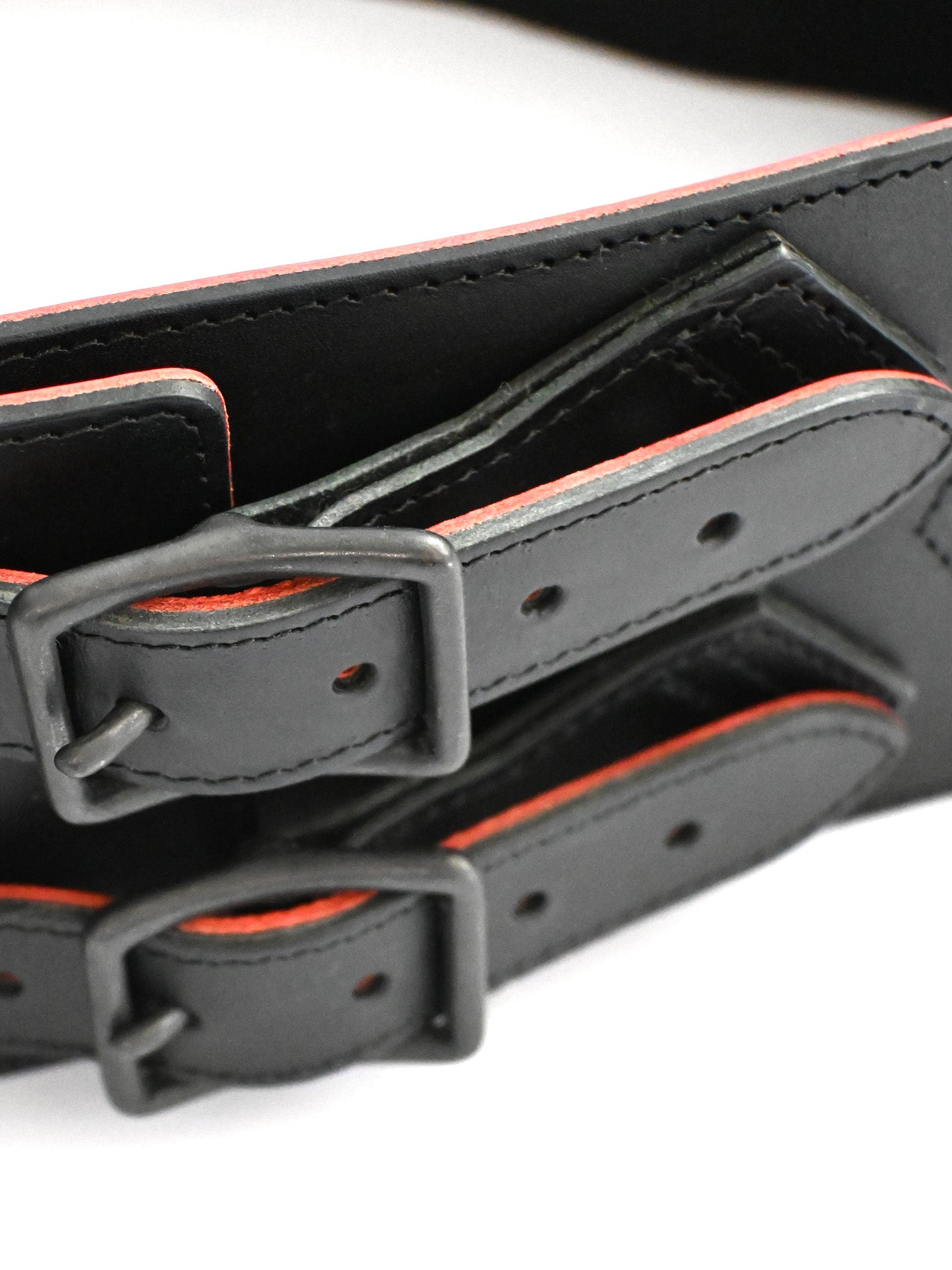 ベルト穴位置の2個目または3個目に近いサイズをお選びいただくと、革部分のシルエットが美しく出ます。