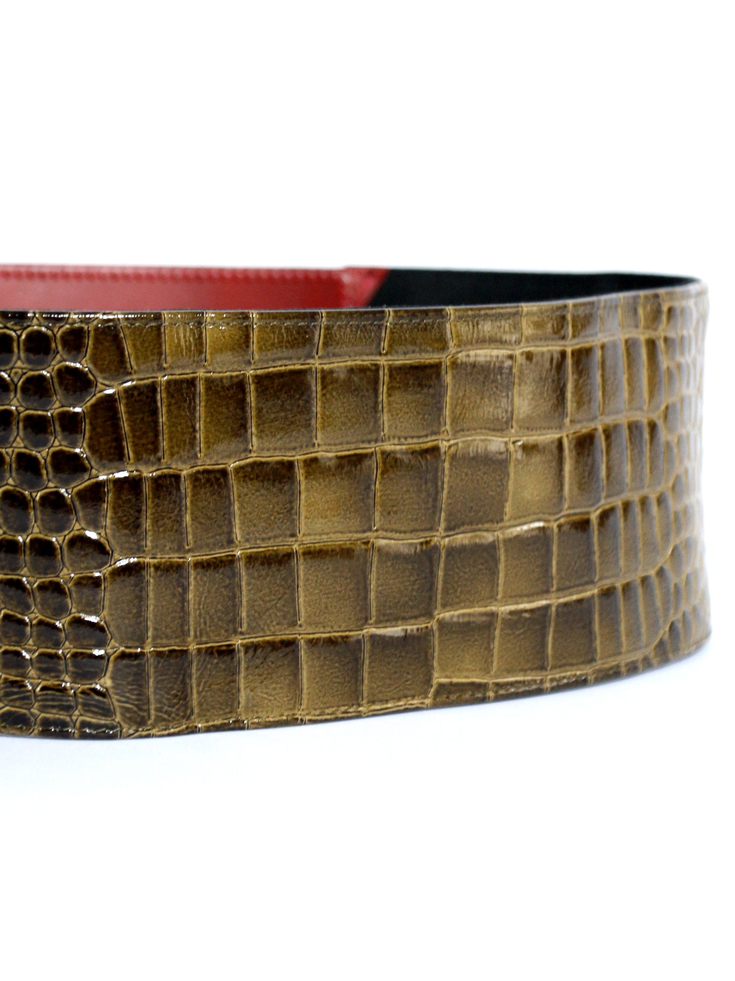 コルセット帯ベルト「クロコ型押しエナメルレザー/カーキ/角帯」