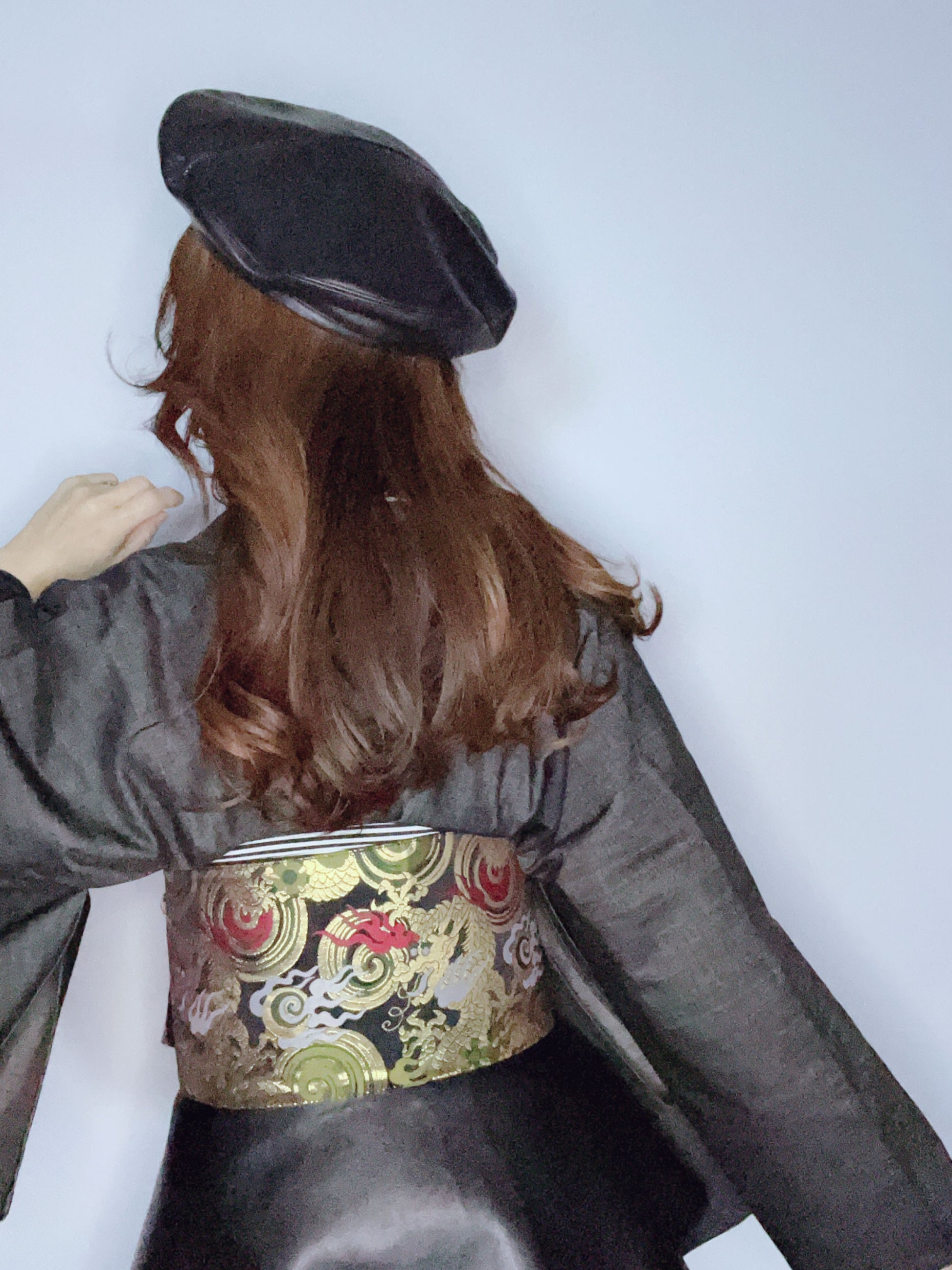 デニム着物は天然繊維のため、水分を含むと多少縮むことがあります(約3cm前後)。