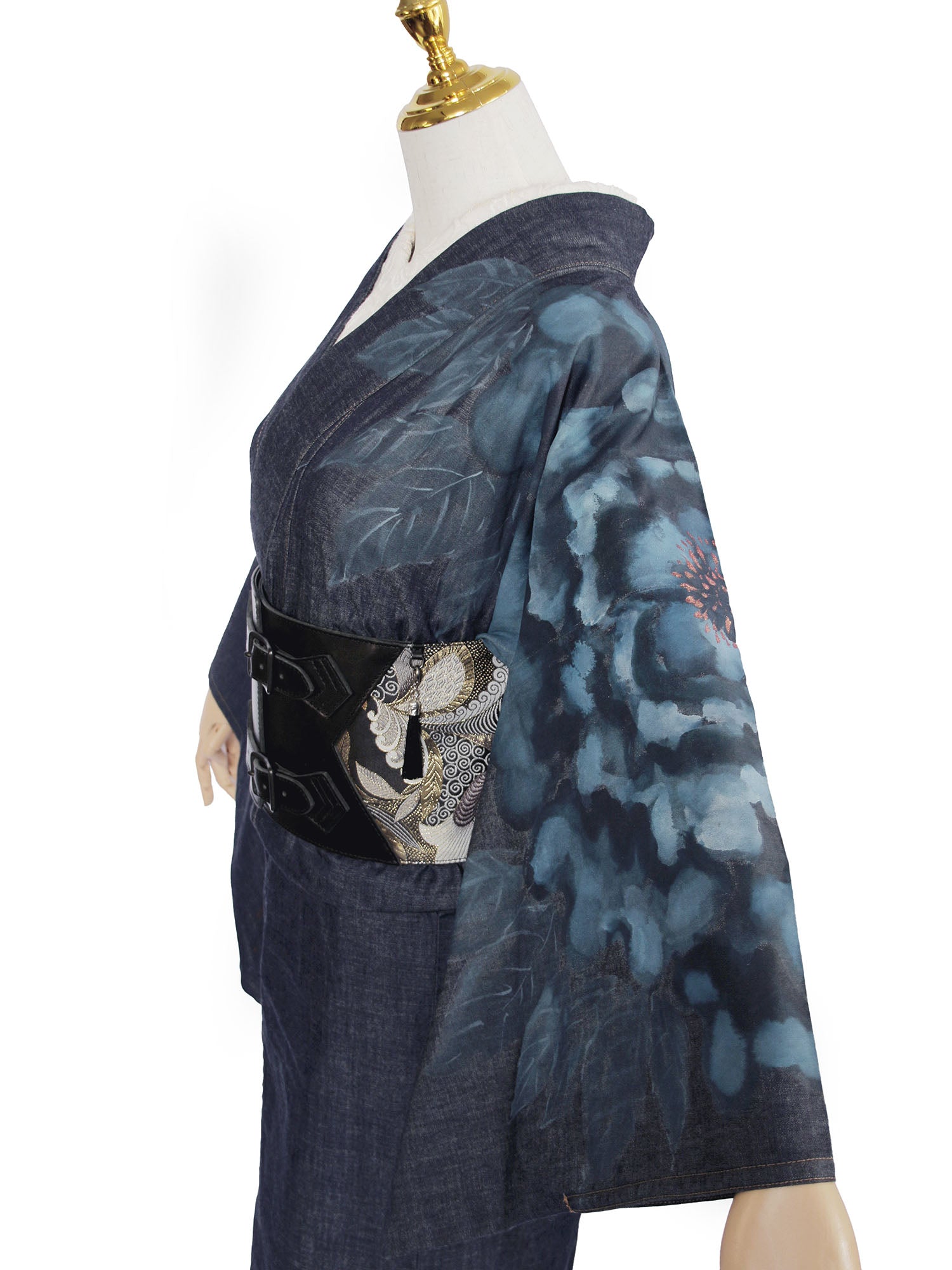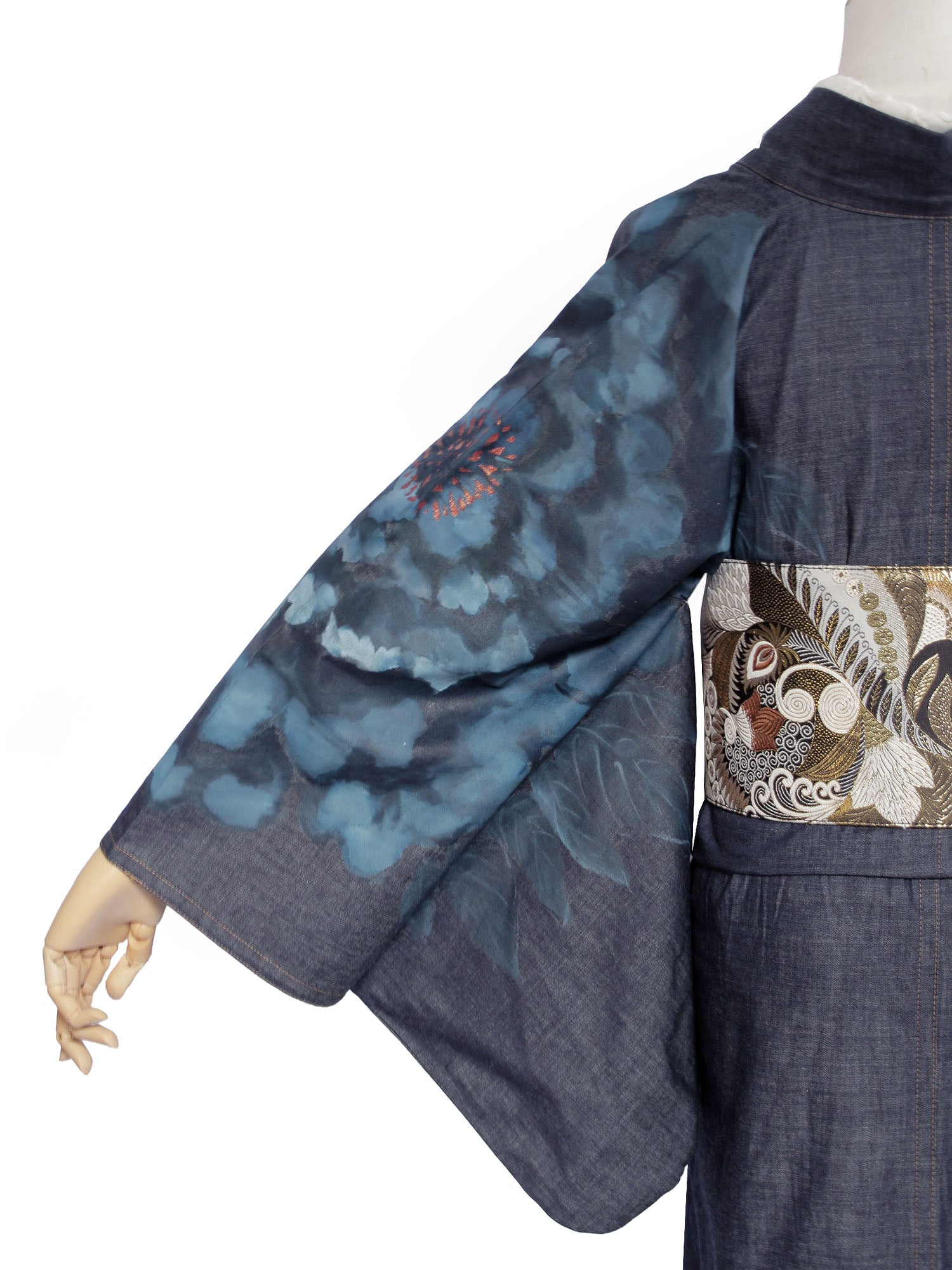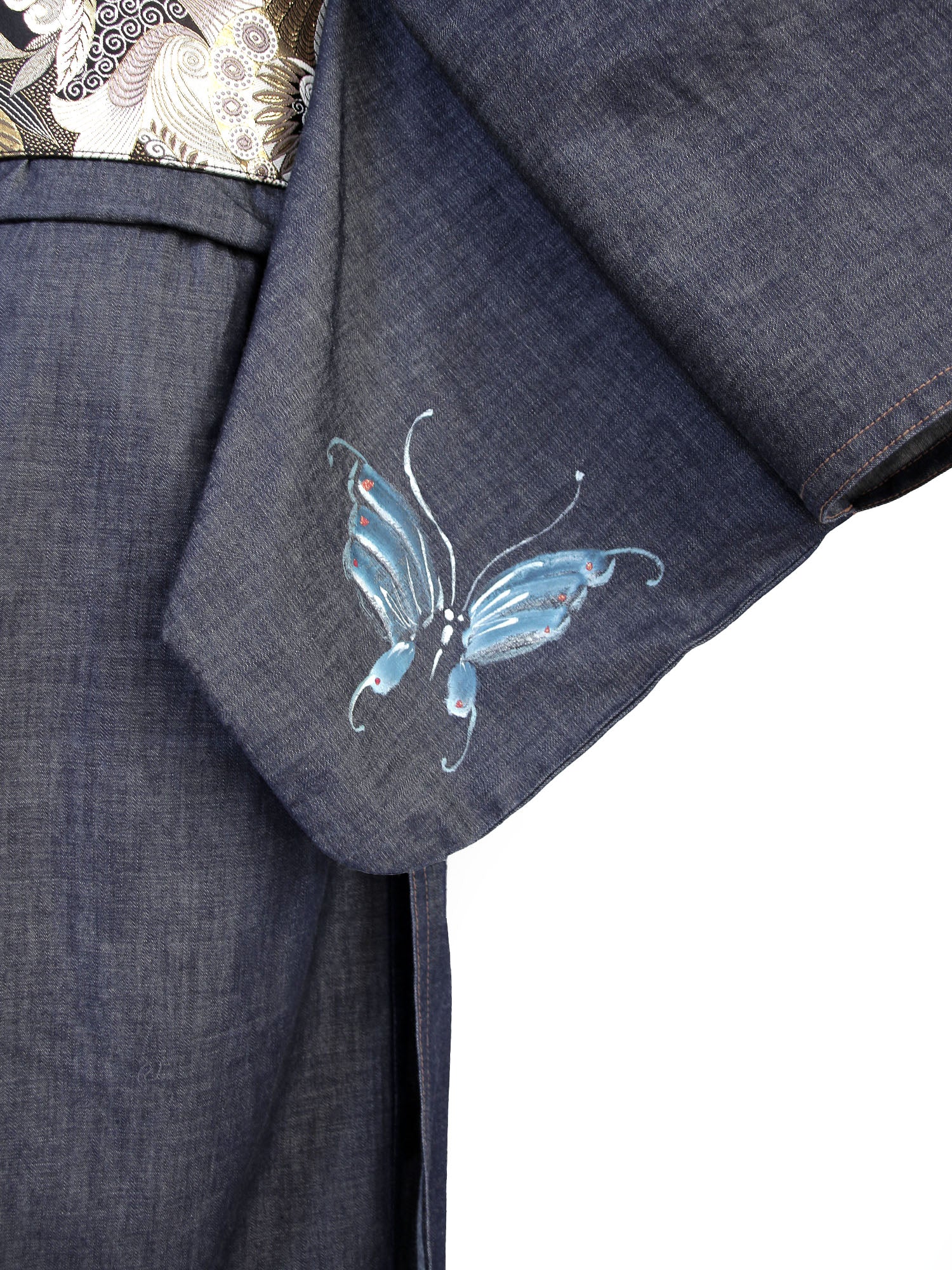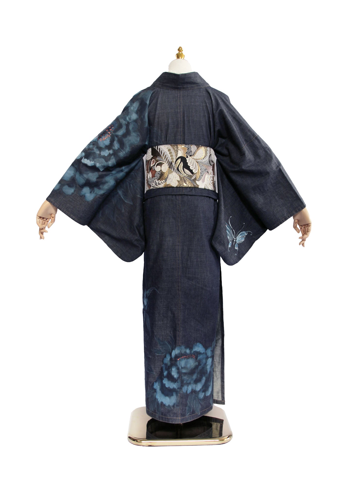 手描き友禅デニム着物「蝶MEGA牡丹」