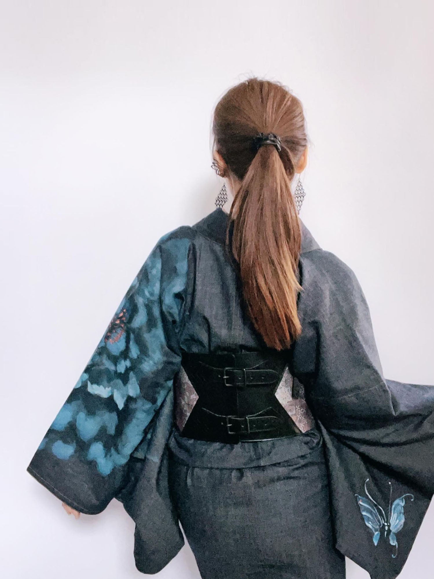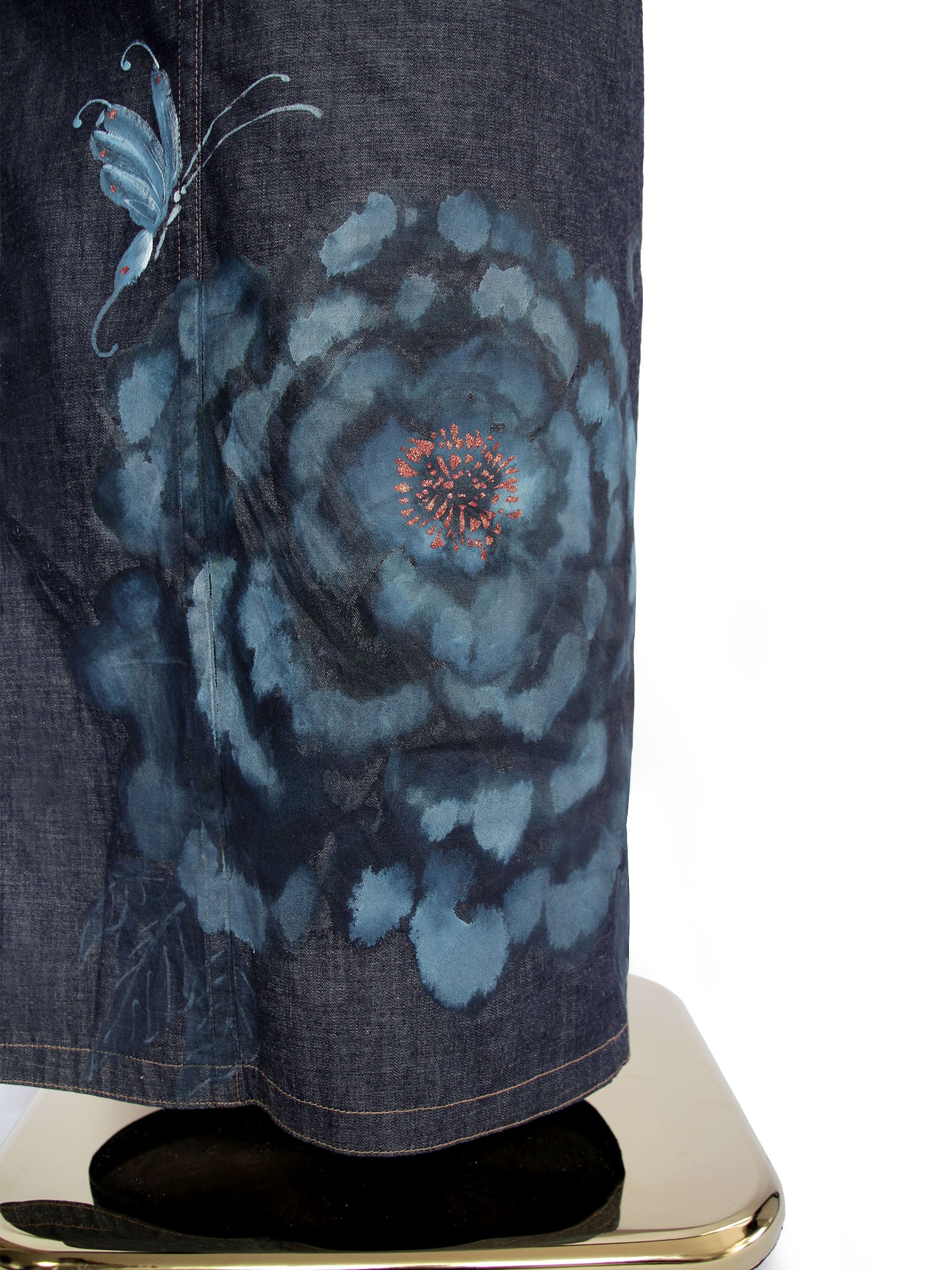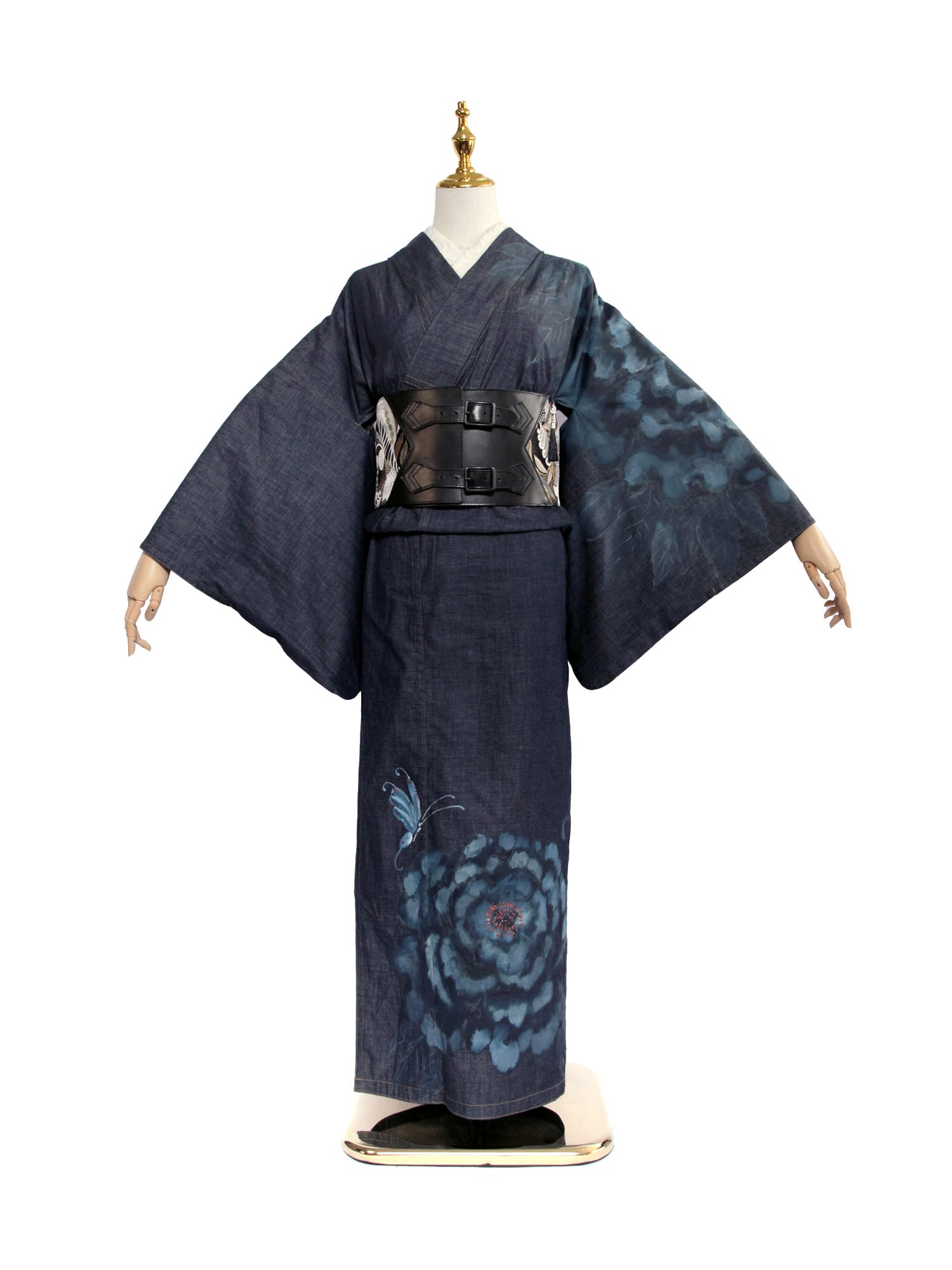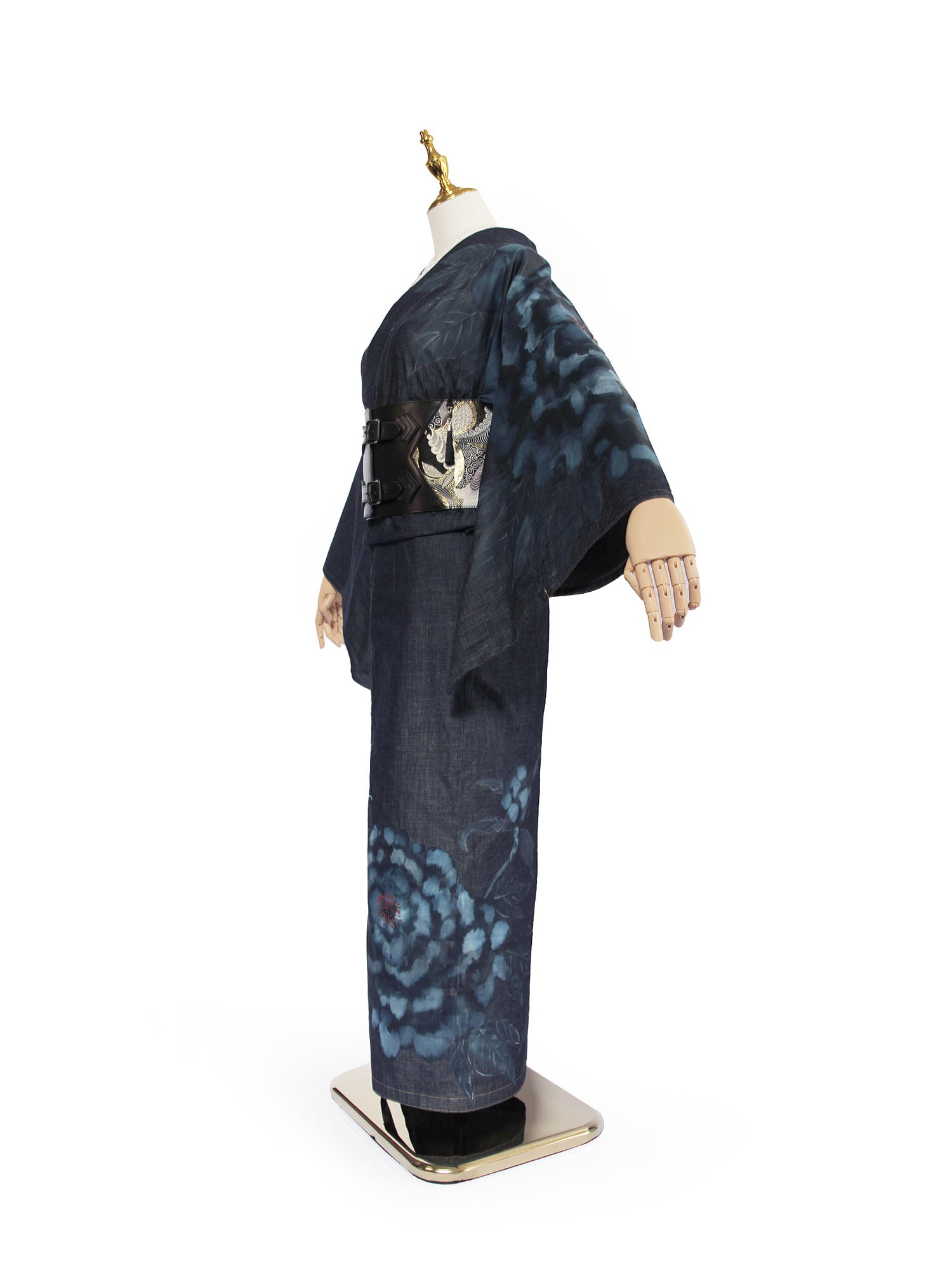 手描き友禅デニム着物「蝶MEGA牡丹」